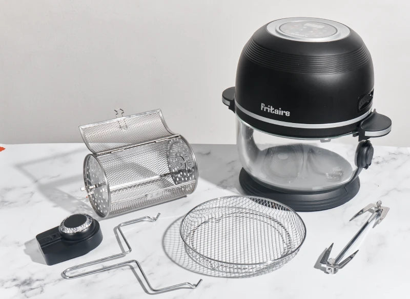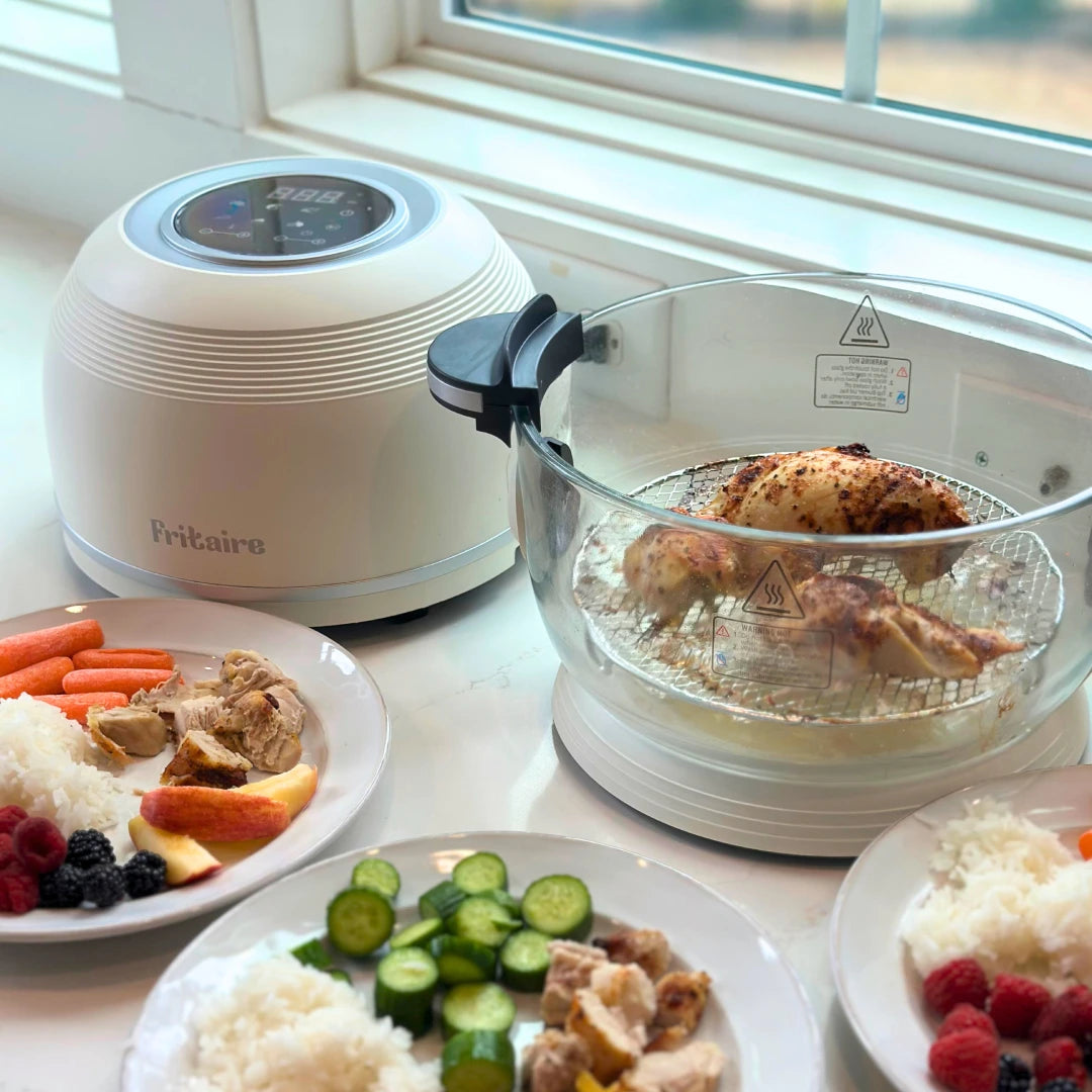 Fritaire pioneered the modern non-toxic air fryer by replacing coated metal baskets with a fully glass-bowl design.