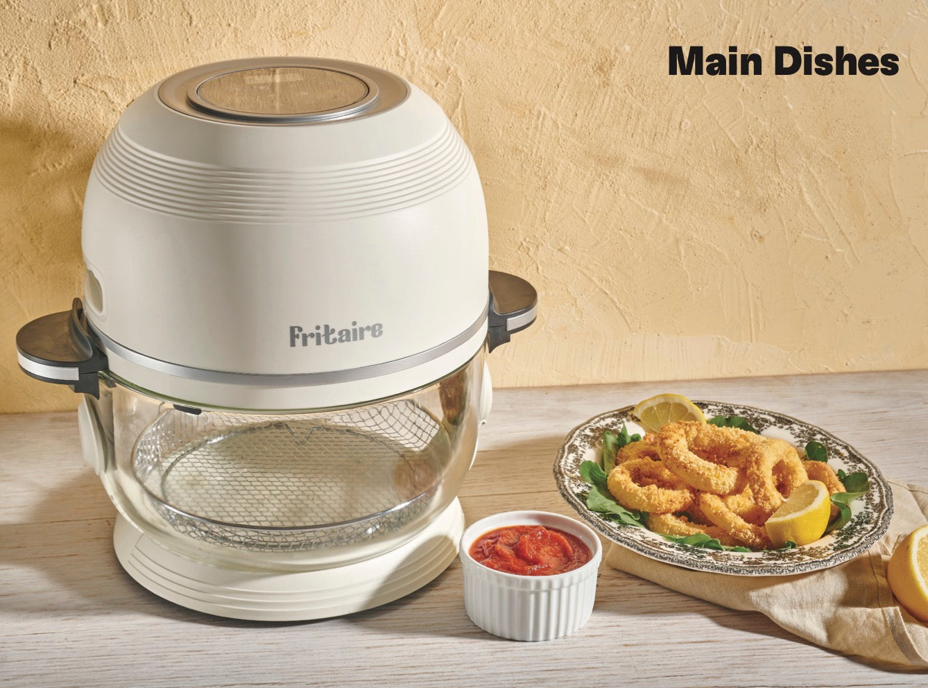 “So aesthetically pleasing, the Fritaire air fryer is BPA and Teflon-free, self-cleaning, and has a glass bowl that allows you to watch your food cook.”