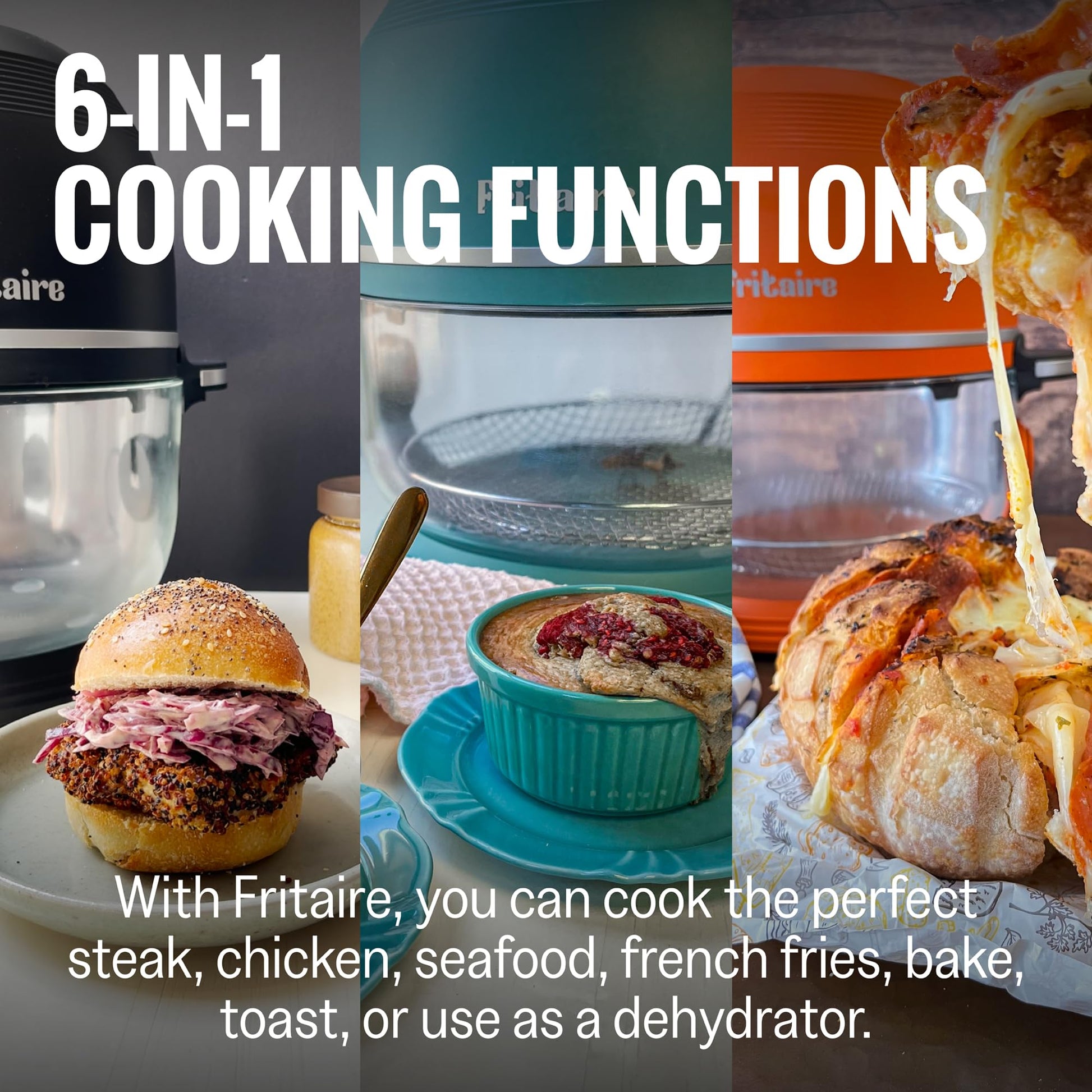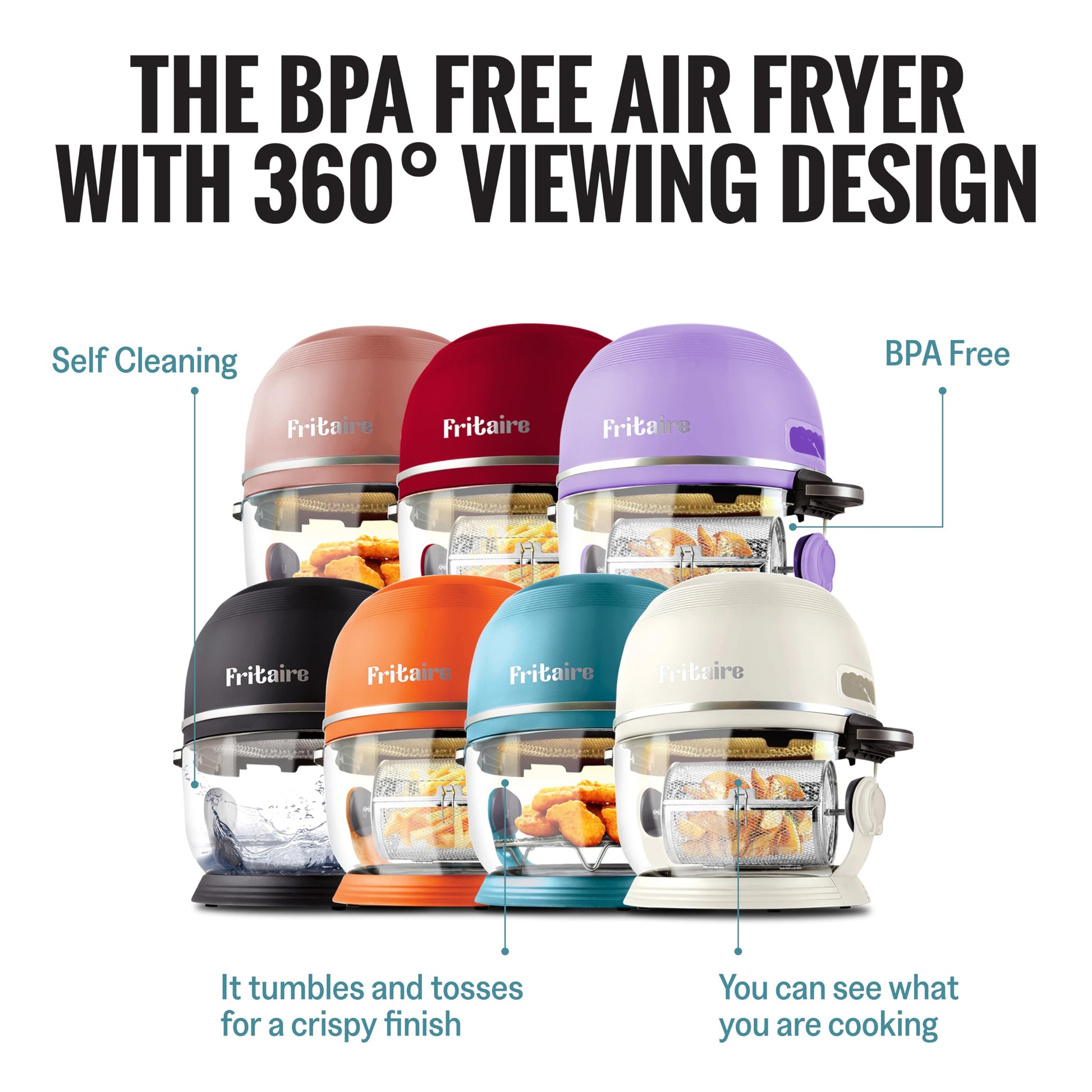 Introducing Fritaire glass airfryer, the ultimate kitchen companion that's set to revolutionize your cooking experience. With its unique 5-quart glass-bowl design, Fritaire offers you a front-row seat to the culinary magic unfolding inside, ensuring you never miss a moment of the action. Say goodbye to guesswork and hello to precision as you witness your meals come to life with crystal clarity, thanks to our innovative 360° viewing experience. But Fritaire isn't just about aesthetics. Powered by advanced convection technology, this instant vortex air fryer ensures that every dish receives uniform heat distribution for consistently crispy and delicious results. Whether you're air frying, baking, roasting, or dehydrating, Fritaire's versatile 6-in-1 single-touch cook settings make meal preparation a breeze, catering to your every culinary whim. And let's talk versatility. With Fritaire, your cooking possibilities are endless. Our included rotisserie attachment allows you to effortlessly roast whole foods to perfection, while the rotating fry basket guarantees the crispiest fries you've ever tasted. An air fryer chicken, from succulent steaks to crispy seafood, from golden fries to mouthwatering desserts, Fritaire delivers culinary excellence with every dish. But that's not all—cleanup is a cinch too. Simply fill the glass bowl with soapy water, activate the self-cleaning mode, and watch as Fritaire air cooker effortlessly rinses away any mess, an easy clean air fryer leaving you with more time to savor your culinary creations. So why settle for ordinary when you can experience the extraordinary with Fritaire? Elevate your cooking game, impress your loved ones, and indulge in healthier, tastier meals—all while incorporating the latest in glass air fryer technology. Try Fritaire's air fryer non toxic and non teflon today and embark on a culinary journey like no other.